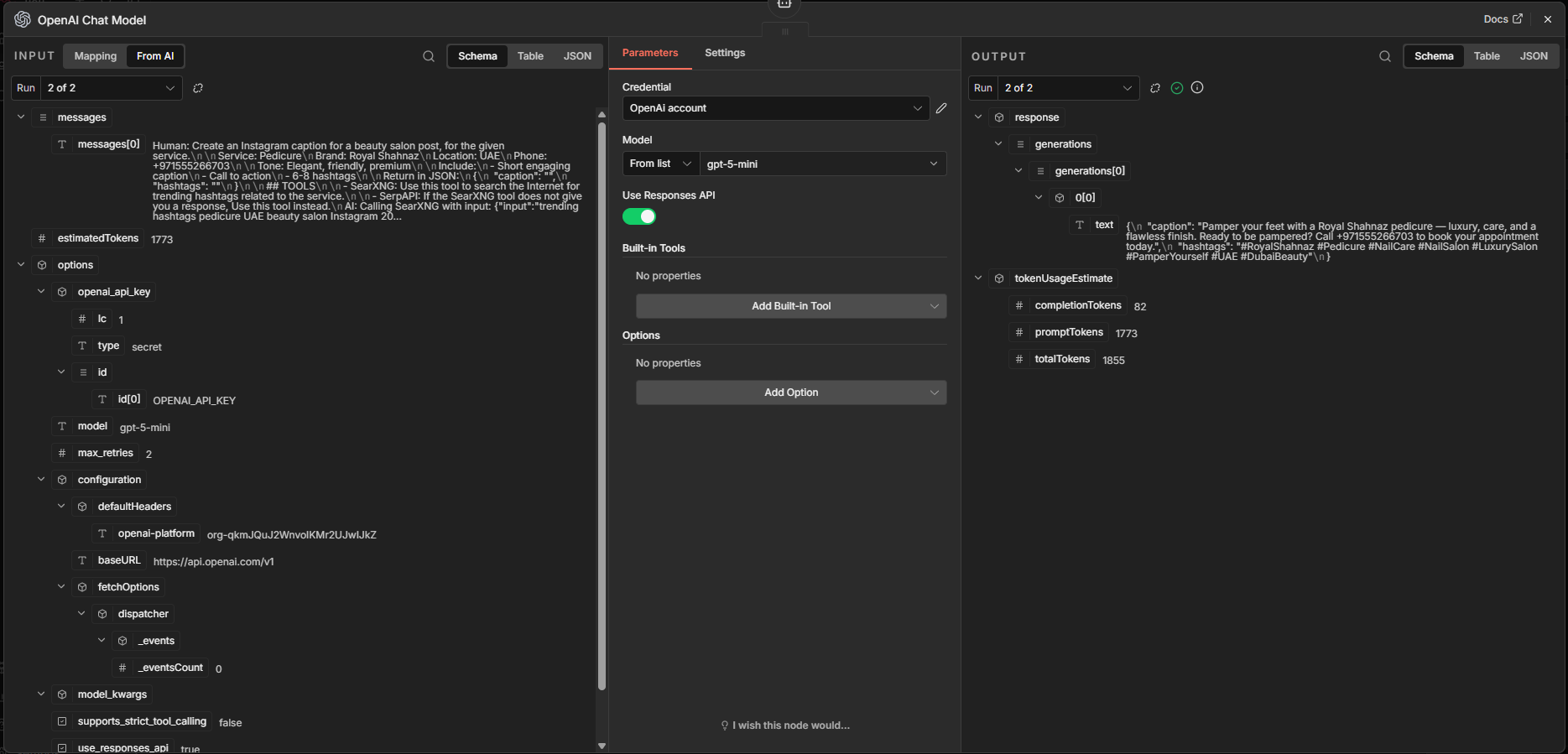 I used the gpt-5-mini model by OpenAI for caption and hashtag generation and the Nano Banana model by Google for post image creation.