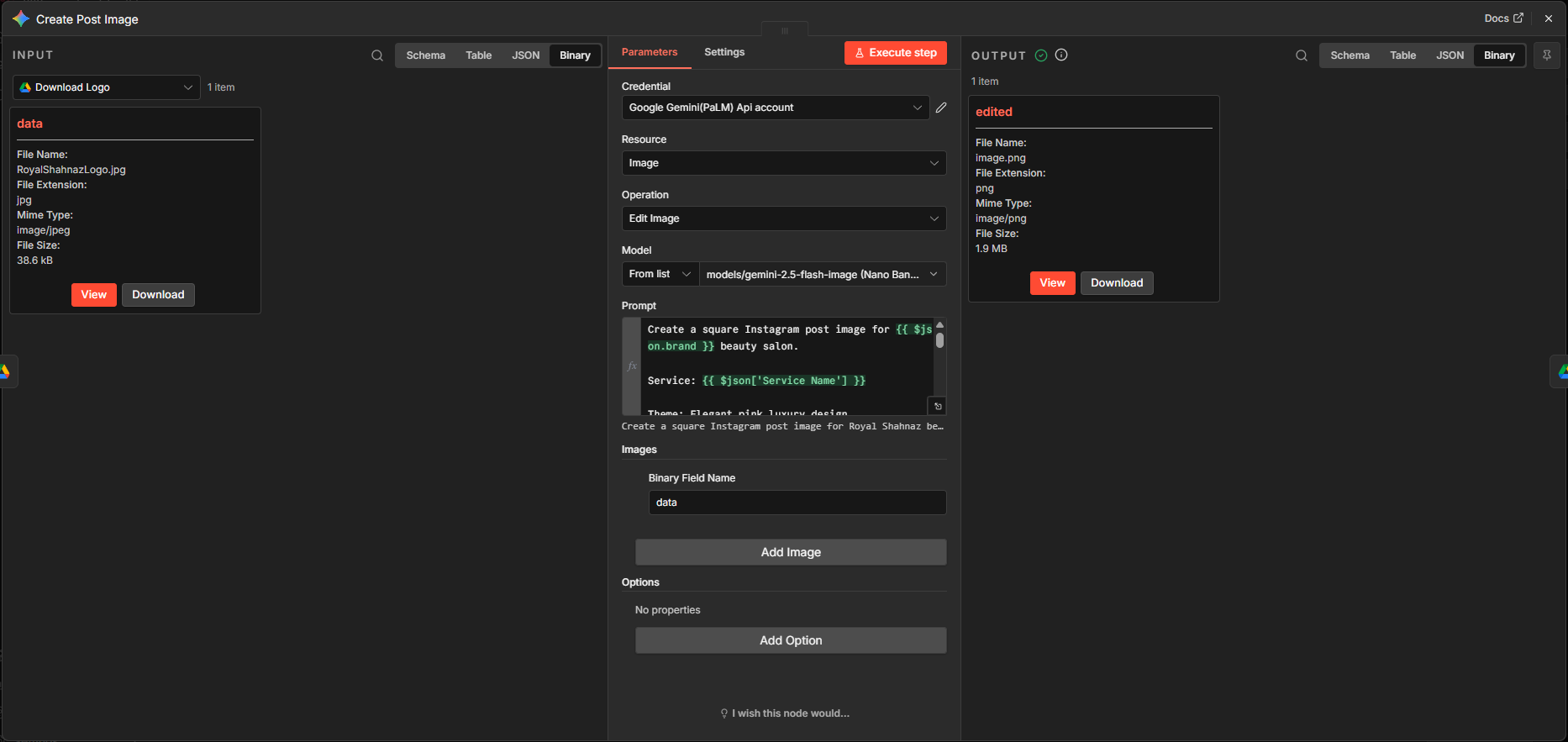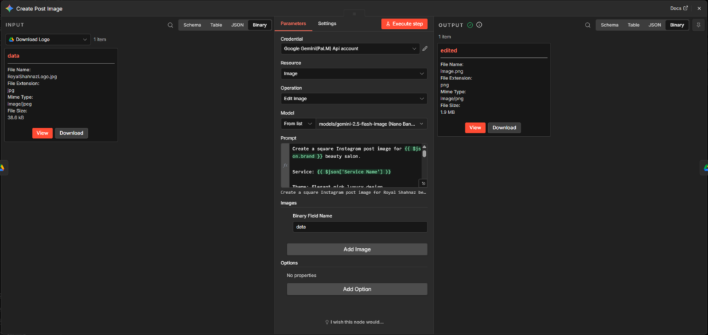 In this post, I will explain how an AI powered n8n workflow is used to create attractive Instagram posts for the Royal Shahnaz beauty salon.